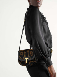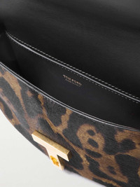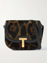 EDITORS'NOTES TOM FORD's 'Wallis' bag is adorned with a gold-tone 'T' plaque which doubles as a flap fastening. It's been crafted in Italy from leopard-print calf hair in a sleek saddle shape outlined in leather and has enough space for your cardholder, lipstick and earphones inside. DETAILS & CARE - Leopard-print calf hair, black leather - Adjustable shoulder strap - Push-clasp fastening at front flap