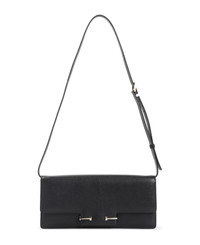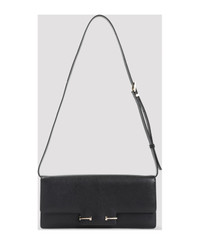 Tom Ford Black Goat Leather Shoulder Bag. Pure black goat leather shoulder bag, top adjustable shoulder strap, front flap snap fastening, front silver-tone metallic signature T-logo details, one main compartment, tonal stitching. Silver-tone hardware. Made in: Italy Color: Black Size and fit: - W:30cm H:13cm D:4,5cm Model number: L1899LGO033P1N001