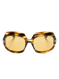 tortoiseshell-effect oversize-frame sunglasses Highlights - Havana brown - Acetate - Tortoiseshell effect - Oversize frame - Uv-protective yellow tinted lenses - Lens decal - Sculpted arms - Curved tips - These glasses come with a protective case. Made in Italy Composition Acetate 100% SIZE & FIT Measurement Arm Length 5.31 in(13.5 cm) Bridge Width 0.78 in(2 cm) Lens Diameter 2.36 in(6 cm) Total Width 5.78 in(14.7 cm)