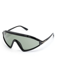 Lorna shield-frame sunglasses Highlights - Black - Acetate - Shield frame - Uv-protective green tinted lenses - Signature t detail to the side - Logo lens decal - Straight arms with curved tips - These glasses come with a protective case. Made in Italy Composition Acetate 100% SIZE & FIT Measurement Arm Length 5.62 in(14.3 cm) Bridge Width 0.07 in(0.2 cm) Lens Diameter 4.72 in(12 cm) Total Width 5.9 in(15 cm)