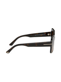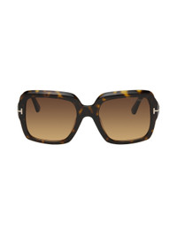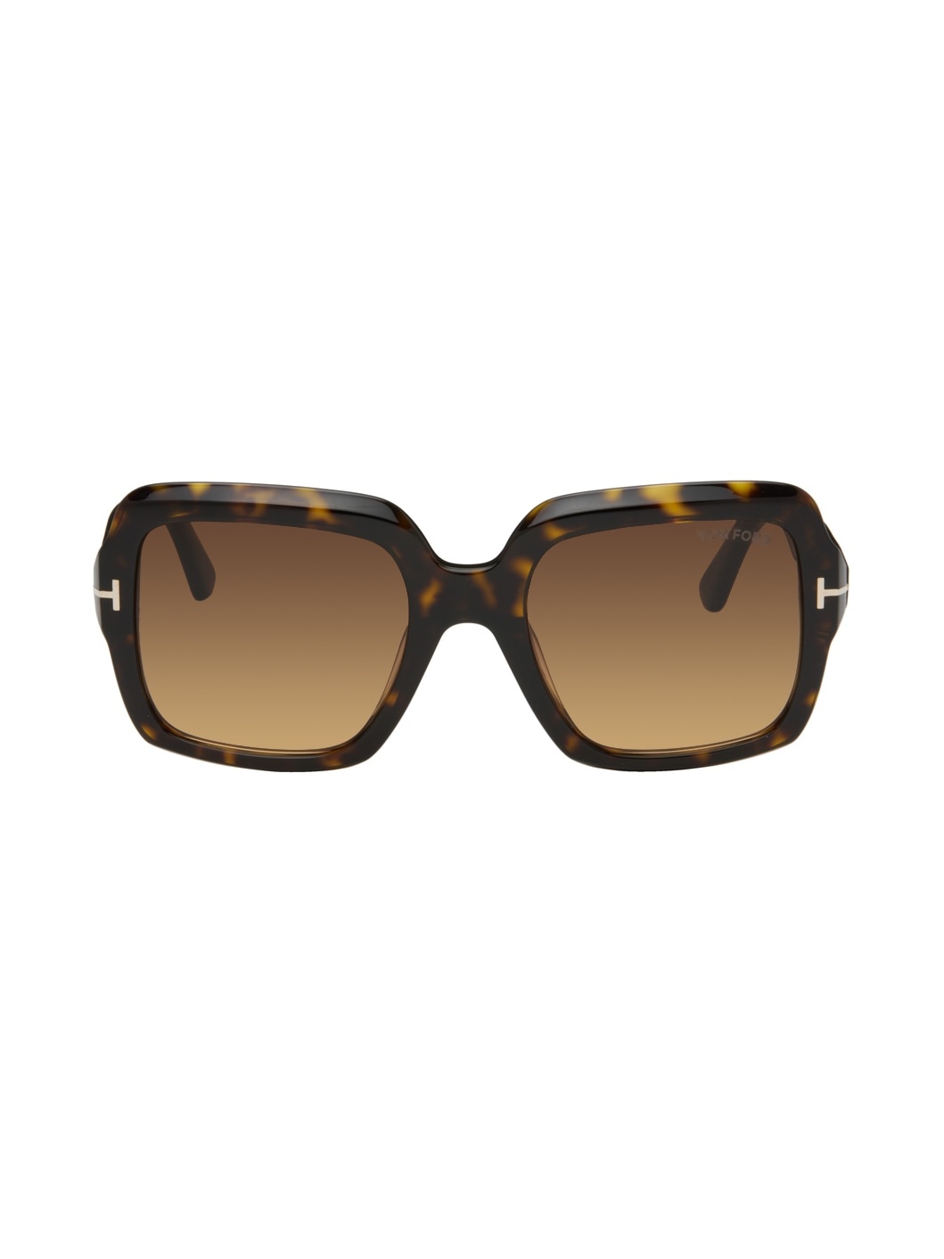 Square acetate-frame sunglasses in tortoiseshell. · Brown lenses with 100% UV protection · Logo etched at lens · Integrated nose pads · Inset hardware at hinges · Logo plaque at temple tips · Hardside case included · Size: 54.21 140 Supplier color: Dark havana