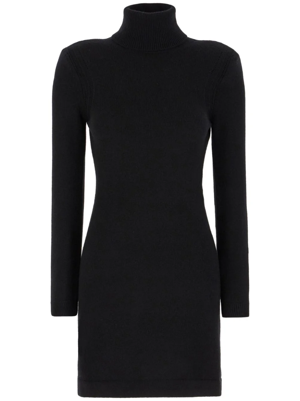 cashmere mini dress Highlights - Black - Cashmere - Fine knit - Thigh-length - Ribbed trim - High neck - Long sleeves - V-back Made in Italy Composition Cashmere 100%