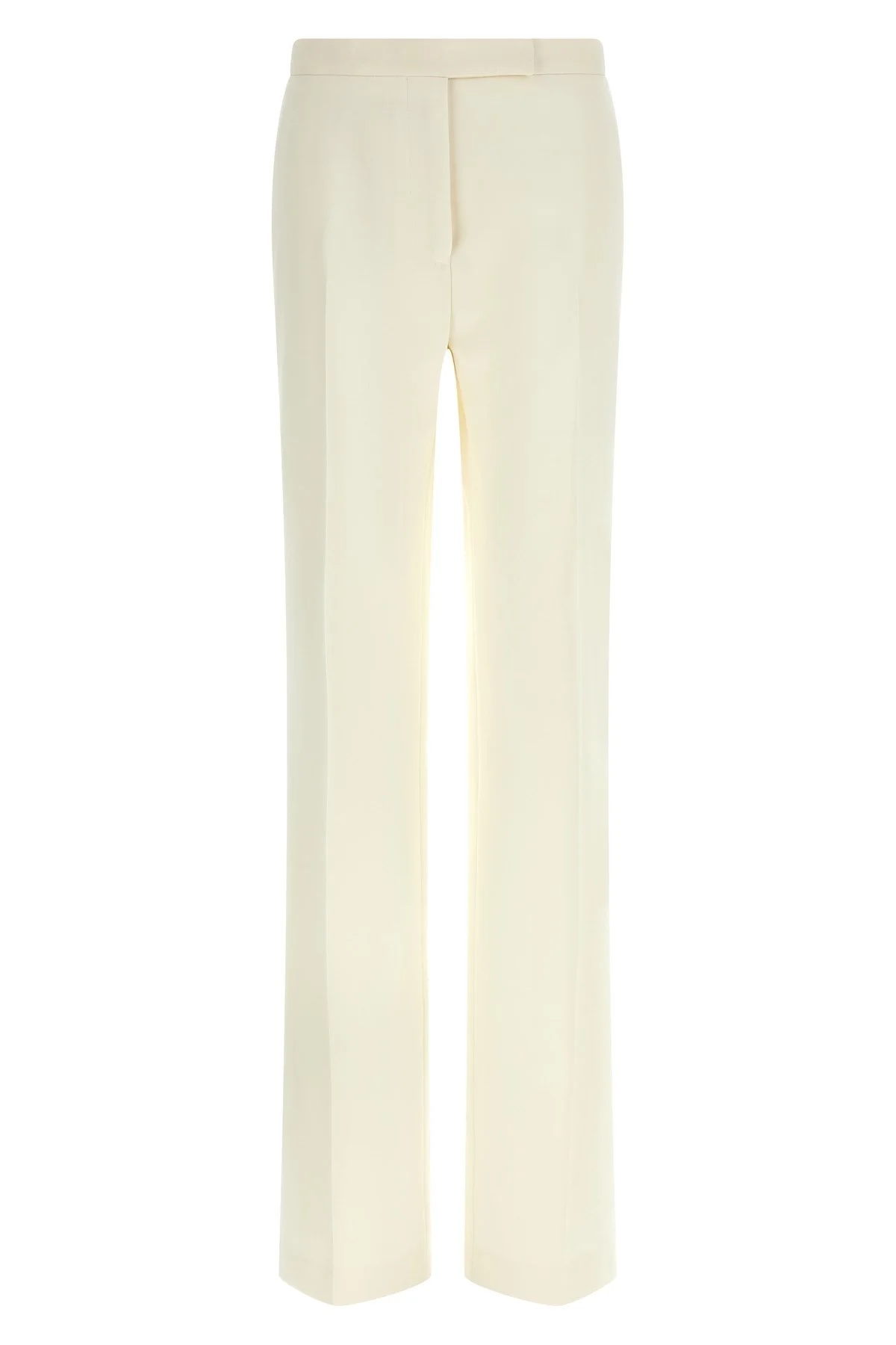 cod. PAW687FAX1667WAD 'Tuxedo' grain de poudre wool pants with tone-on-tone satin side inserts, straight leg, hook zip and front button closure, pockets. Color: White Size & Fit: true to size fit Composition: 100% wool Made in: Italy