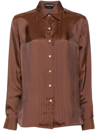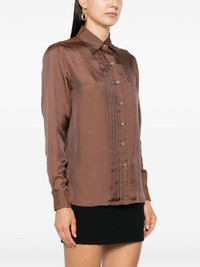 plisse-details twill-weave shirt Highlights - Chocolate brown - Twill weave - Spread collar - Plisse details - Long sleeves - Buttoned cuffs - Straight hem - Front button fastening Made in Italy Composition Viscose 65%, Silk 35% SIZE & FIT Model measurements Height 5 ft 11 in(1.8 m) Bust/Chest 33.07 in(84 cm) Hips 37.4 in(95 cm) Waist 25.19 in(64 cm) FittingInformation Designed for a relaxed fit, this piece allows for comfort and movement when worn Made from a lightweight non-stretch fabric This piece fits true to size – take your usual size Measurement BUST 41.73 in(106 cm) LENGTH 29.13 in(74 cm) WAIST 42.51 in(108 cm) SLEEVE LENGTH 22.83 in(58 cm) Washing instructions Dry Clean Only