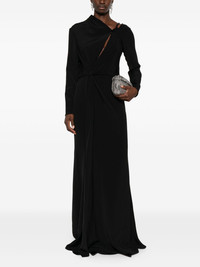 twisted asymmetric dress Highlights - Black - Twisted detail - Long sleeves - Asymmetric neckline - Floor-length skirt Made in Italy Composition glass 80%, Brass 20% Lining: Silk 100% Outer: Silk 100% SIZE & FIT Model measurements Height 5 ft 10 in(1.77 m) Bust/Chest 32.28 in(82 cm) Hips 35.03 in(89 cm) Waist 25.19 in(64 cm) Washing instructions Dry Clean Only