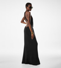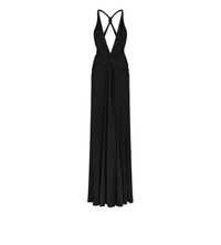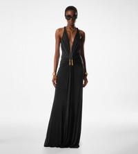 - EVENING DRESS - DEEP V-NECK - TWISTED CRISS-CROSS STRAPS - CENTRE FRONT KNOT DETAIL AND DRAPING EFFECT - GATHERED PLEATS DETAIL ON THE CENTRE FRONT AND BACK - INVISIBLE SIDE ZIP - CRAFTED IN FLUID KNITTED VISCOSE STRETCH JERSEY - 97% VISCOSE 3% ELASTANE - LINING: 96% VISCOSE 4% ELASTANE