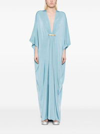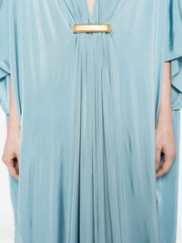 V-neck dress Highlights - Sky blue - Rear hook and eye fastening - Draped detailing - Stretch-jersey - Gold-tone hardware Made in Italy Composition Outer: Viscose 98%, Elastane 2% SIZE & FIT Model measurements Height 5 ft 9 in(1.76 m) Bust/Chest 31.1 in(79 cm) Hips 35.03 in(89 cm) Waist 24.4 in(62 cm) FittingInformation Designed to be unstructured, offering a loose fit throughout Made from a midweight stretch fabric, this piece offers elasticity and flexibility when worn