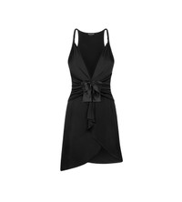 - V-NECK GATHERED DRESS COCKTAIL DRESS - TWIST STRAPS - DEEP V-NECKLINE - SKIRT WITH A GATHERED EFFECT - SILK SATIN BOW AT THE WAIST - CRAFTED IN TEXTURED LUSTROUS VISCOSE JERSEY - 100% VISCOSE - MADE IN ITALY