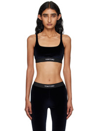 Velour bralette. · Scoop neck · Jacquard logo at elasticized hem · Fixed shoulder straps Supplier color: Midnight blue Body: 72% triacetate, 28% polyester. Trim: 82% polyester, 9% polyamide, 9% elastane. Made in Bosnia And Herzegowina 252076F073000