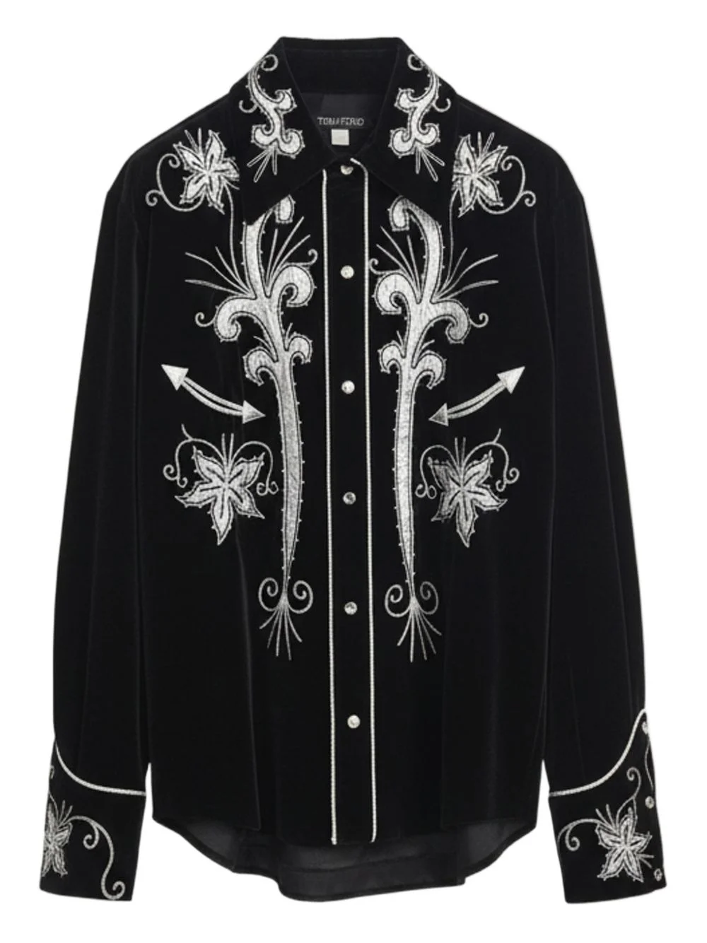 velvet shirt Highlights - Black - Buttoned cuffs - Applique detailing - Long sleeves Made in Italy Composition Outer: Cotton 100%, Viscose 90%, Polyester 10% Silk 100% Washing instructions Read Manufacturer Guidelines
