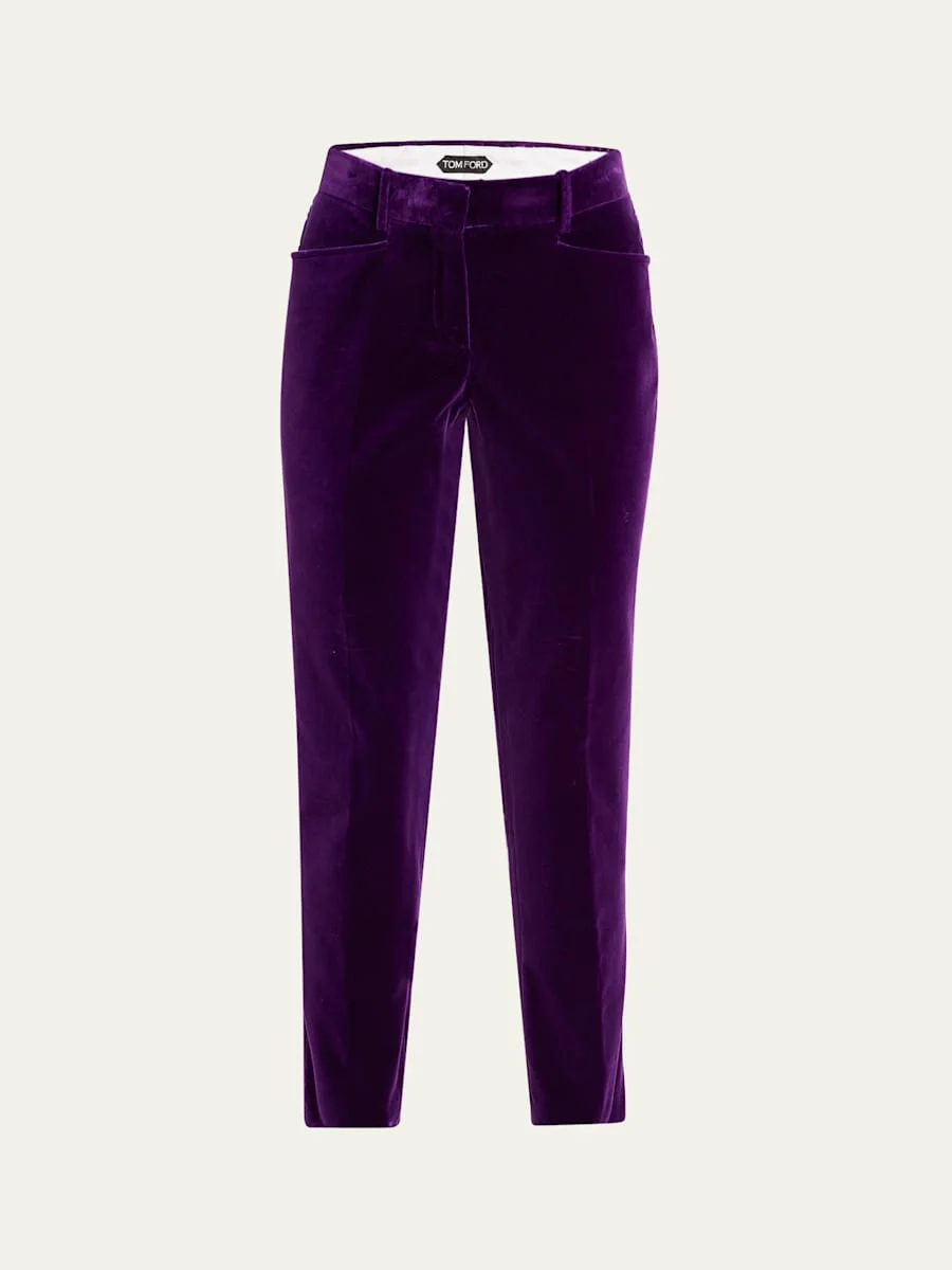 Velvet Slim-Leg Ankle Cigarette Trousers