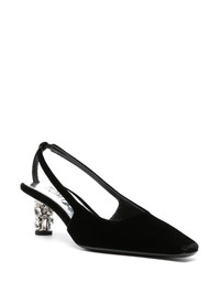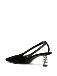 crystal-embellished velvet slingback pumps Highlights - Black - Goatskin - Velvet finish - Rhinestone embellishment - Square toe - Slingback strap - Branded insole - Sculpted heel Made in Italy Composition Lining: Goat Skin 100% Sole: Calf Leather 100% Outer: Calf Leather 100%, Fabric 100% SIZE & FIT Measurement HEEL 2.75 in(7 cm)