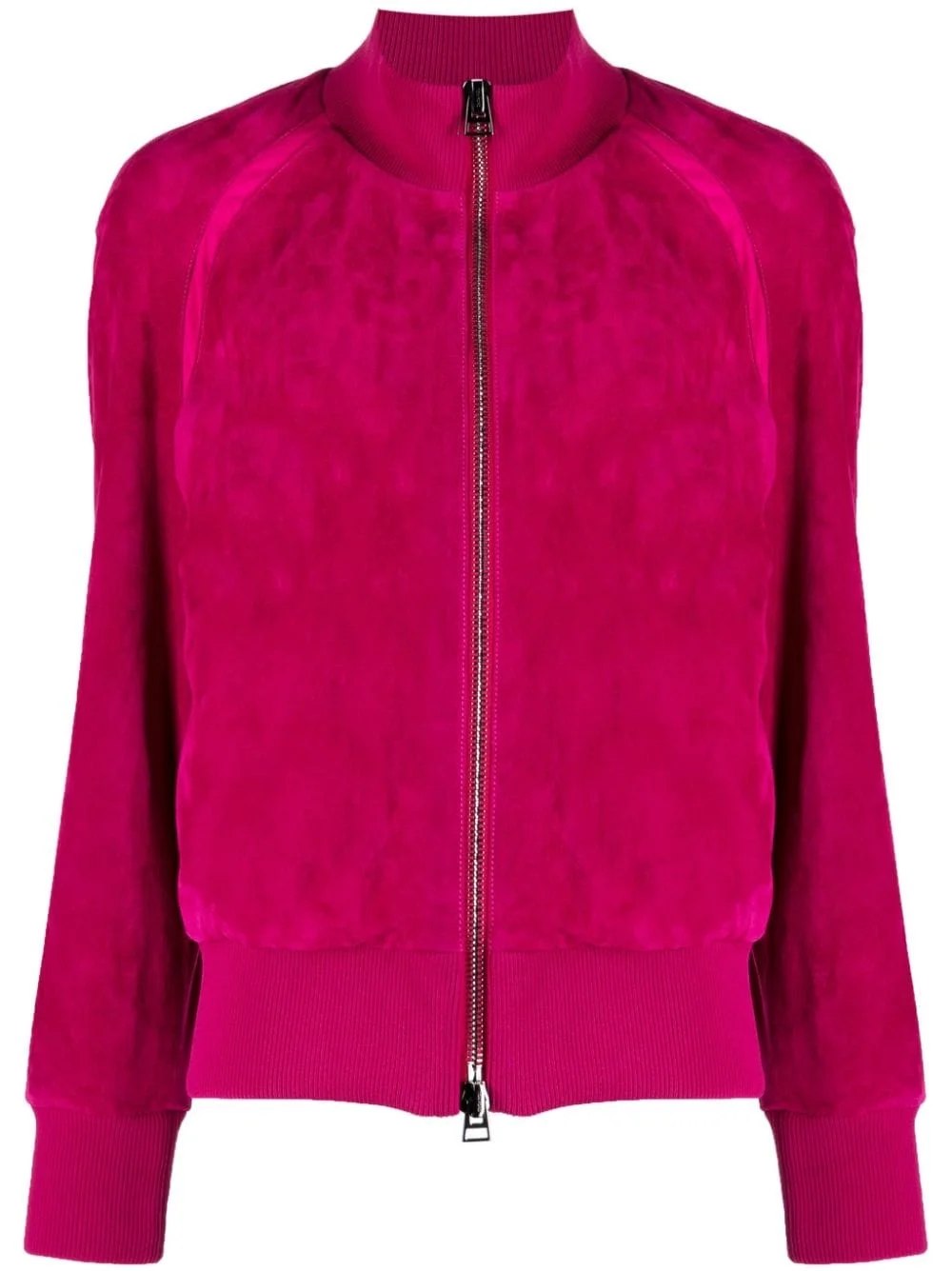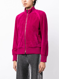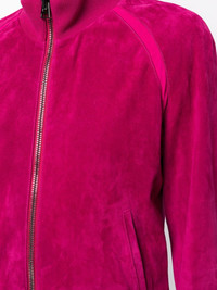 velvet track jacket An elevated take on a sporty silhouette, this TOM FORD track jacket is crafted from velvet – a reference to noughties styles. Two pockets at the sides offer added practicality to the fuchsia pink design. Highlights - Fuchsia pink - Stretch-design - Velvet - High neck - Front two-way zip fastening - Long raglan sleeves - Two side slit pockets - Ribbed edge - Straight hem Made in Italy Composition Lining: Viscose 57%, Polyamide 39%, Elastane 4% Silk 97%, Elastane 3% Outer: Buffalo Leather 100%, Polyamide 98%, Elastane 2% SIZE & FIT Model measurements Height 5 ft 10 in(1.77 m) Bust/Chest 31.49 in(80 cm) Hips 35.43 in(90 cm) Waist 25.19 in(64 cm) FittingInformation Designed to be unstructured, offering a loose fit throughout The ribbed hem offers a close, comfortable fit Suede leather has a soft and treated construction offering some flexibility This piece fits true to size – take your usual size Washing instructions Specialist Cleaning