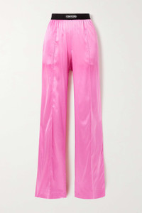 EDITORS'NOTES Expertly tailored in Italy, TOM FORD's pajama-style pants are suitable for dinners and daytime looks alike. They're made from lustrous silk-satin blended with stretch and have an elasticated, logo-detailed velvet waistband. Balance the relaxed legs with heeled sandals. SIZE & FIT - Fits true to size, take your normal size - High-rise, cut for a relaxed fit - Elasticated at the waist for a comfortable fit - Lightweight, stretchy fabric - Model is 177cm/ 5'10" and is wearing a size Small DETAILS & CARE - Pink stretch-silk satin, black and white velvet - Pull on - 93% silk, 7% elastane; trim: 90% polyamide, 10% elastane - Dry clean - Designer colour: Rosebloom