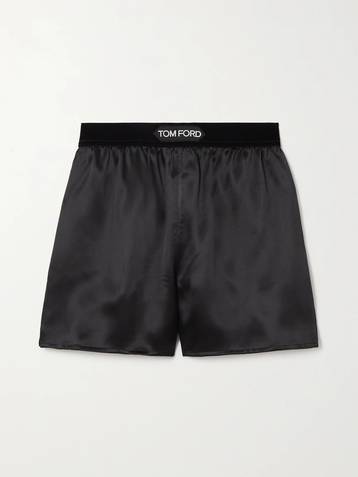 TOM FORD's shorts are modeled on men's boxer styles. They've been made in Italy from silk that's woven with hints of stretch and have a flexible velvet-trimmed waistband featuring the label's logo in white lettering.