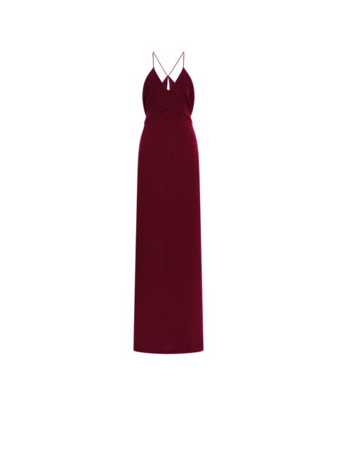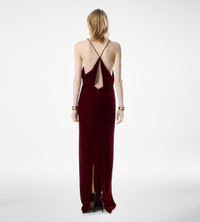 - V-NECK EVENING DRESS - CUT OUT DETAIL ON THE BACK - INVISIBLE ZIP AT THE CENTRE BACK - FULLY LINED IN SILK SATIN - FLOOR LENGTH - CRFATED IN LIGHTWEIGHT VELVET - 67% VISCOSE 33% CUPRO