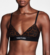 - STRETCH BRA - ELASTICATED BAND WITH TOM FORD JACQUARD LABEL - ELASTIC ADJUSTABLE STRAPS - CENTRE BACK GOLD METAL LOGOED HOOK FOR CLOSURE - GOLD METAL HARDWARE - CRAFTED IN REFLECTED LEOPARD PRINTED MODAL - 95% VISCOSE 5% ELASTANE