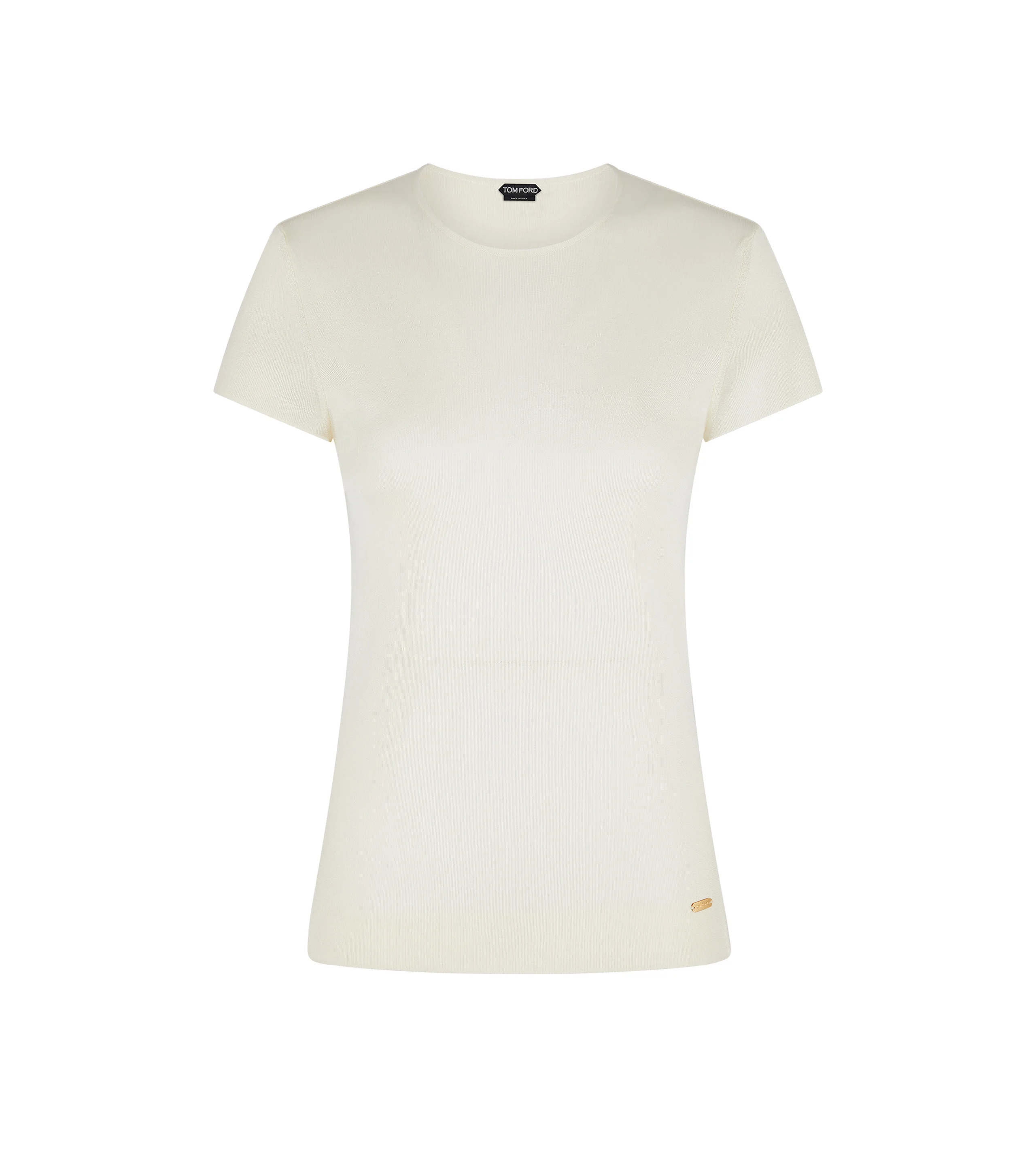 - CREWNECK KNITTED T-SHIRT - TOM FORD LOGO METAL PLAQUE - AMBER VINTAGE GOLD METAL HARDWARE - CRAFTED IN COMPACT INTERLOCK SLINKY VISCOSE - GAUGE 14 - 100% VISCOSE