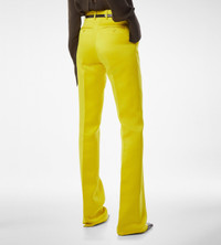 WASHED COTTON SILK BLEND DUCHESSE TAILORED STRAIGHT PANTS