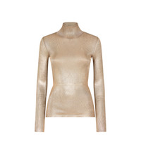 WET LOOK VISCOSE KNIT TURTLENECK TOP