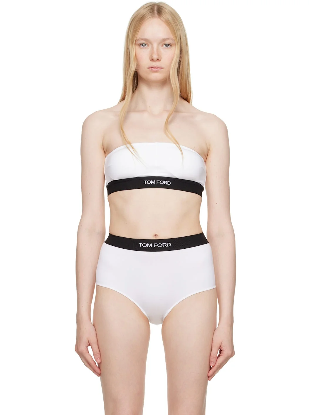 Stretch modal jersey bandeau bra. · Straight neck · Removable padding at cups · Logo-woven elasticized hem · Partially lined Supplier color: White 97% modal, 3% elastane. Made in Bosnia And Herzegowina 251076F073015