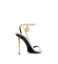- POINTY TOE SHAPE - SIGNATURE PADLOCK METAL HARDWARE - 105 MM ICONIC METAL SPIKE HEEL - ADJUSTABLE BUCKLE ANKLE STRAP - BUCKLES WITH ENGRAVED TOM FORD LOGO - LINING: BLACK LEATHER - INSOLE: BLACK LEATHER WITH GOLD OR SILVER EMBOSSED TOM FORD - SOLE: LEATHER