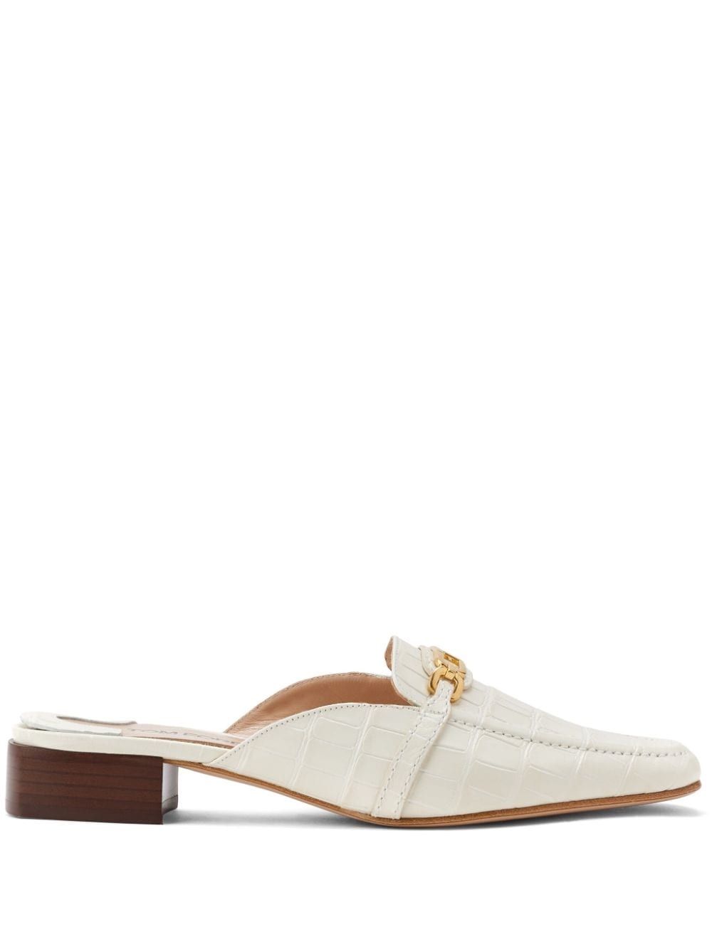 Whitney crocodile-embossed leather mules Highlights - Cream white - Leather - Embossed crocodile effect - Gold-tone logo plaque - Square toe - Slip-on style - Branded insole - Low block heel Composition Sole: Leather 100% Lining: Leather 100% Outer: Goat Skin 100%