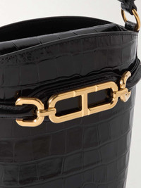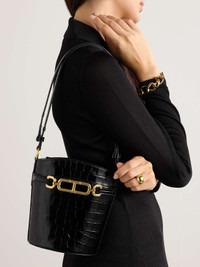 EDITORS'NOTES Like all of the designs in TOM FORD's 'Whitney' range, this bag is defined by the gold-tone chain link hardware - look closely and you'll see the discreet 'T' at the center. It's been crafted in Italy from croc-effect leather in a bucket shape and topped with an adjustable strap. The canvas-lined interior has plenty of space for your cardholder, phone, sunglasses and keys. SIZE & FIT This item’s measurements are: - Handle Drop: 27cm / 10.6in - Height: 19cm / 7.5in - Width: 15cm / 5.9in - Depth: 9cm / 3.5in DETAILS & CARE - Black croc-effect leather - Shoulder strap - Canvas lining - Magnetic fastening tab at open top - Comes with a dust bag