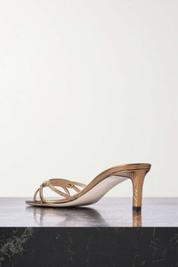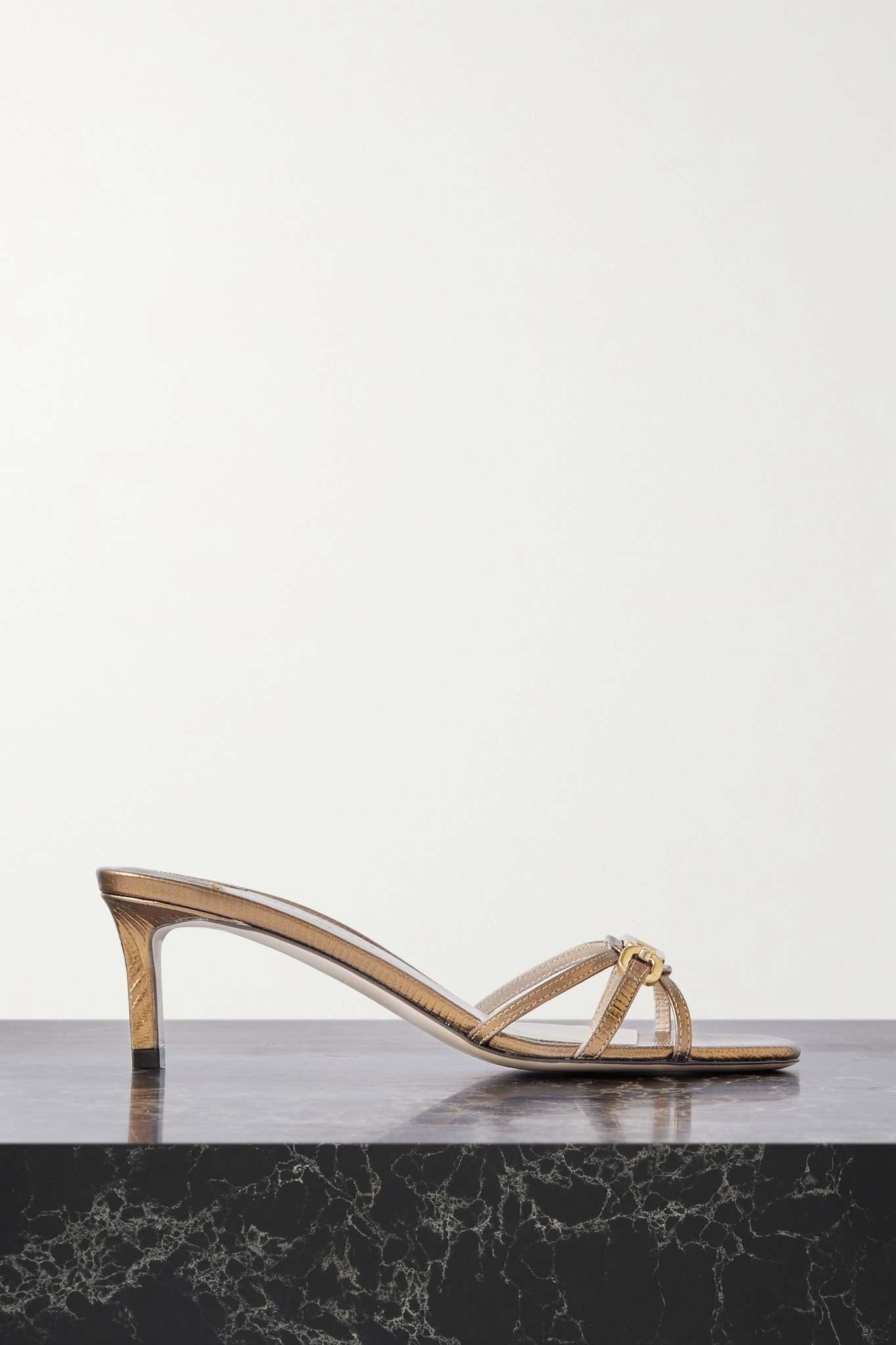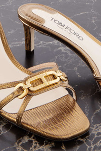 EDITORS'NOTES TOM FORD's 'Whitney' mules are topped with a trio of slim straps - the center is threaded with a gold-tone embellishment featuring the 'T' logo. They're made from lizard-effect leather in a lustrous bronze shade and have a manageable 55mm kitten heel. SIZE & FIT - Fits true to size, take your normal size - Italian sizing DETAILS & CARE - Heel measures approximately 55mm/ 2 inches - Bronze leather (Calf) - Slip on