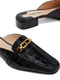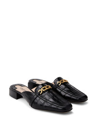 Whitney crocodile-embossed leather mules Highlights - Black/gold-tone - Calf leather - Embossed crocodile effect - Gold-tone logo plaque - Square toe - Slip-on style - Branded insole - Low block heel Made in Italy Composition Sole: Calf Leather 100% Outer: Goat Skin 90%, zamac 10% Lining: Goat Skin 100% SIZE & FIT Measurement HEEL 1.18 in(3 cm) Inside Sole 0.39 in(1 cm)