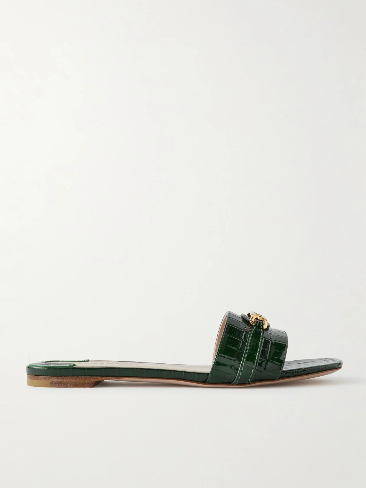 TOM FORD's slides retain all the polish of the higher heeled versions from the same line. Made from leather that's buffed to a bright shine, they have a slim silhouette and are finished with a monogrammed embellishment at the strap.