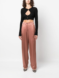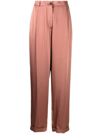 wide-leg satin trousers TOM FORD’s ability to infuse its designs with an undeniably refined aesthetic is evident with these trousers These pair boast a dust-pink, satin-finish construction and are enhanced with pleats for a timeless appeal. Highlights - Pink - Satin finish - Concealed fly and button fastening - Pleat detailing - Belt loops - Two side slit pockets - Two rear welt pockets - Wide leg - Turn-up cuffs Made in Italy Composition Lining: Viscose 54%, Polyester 46% Outer: Acetate 65%, Viscose 35% SIZE & FIT Model measurements Height 5 ft 9 in(1.76 m) Bust/Chest 33.07 in(84 cm) Hips 34.64 in(88 cm) Waist 25.59 in(65 cm) FittingInformation Designed with a wide-leg cut, these trousers allow for a close fit at the waist and offer a loose and roomy fit over the leg Made from a midweight non-stretch fabric This piece fits large – take one size down Washing instructions Dry Clean Only