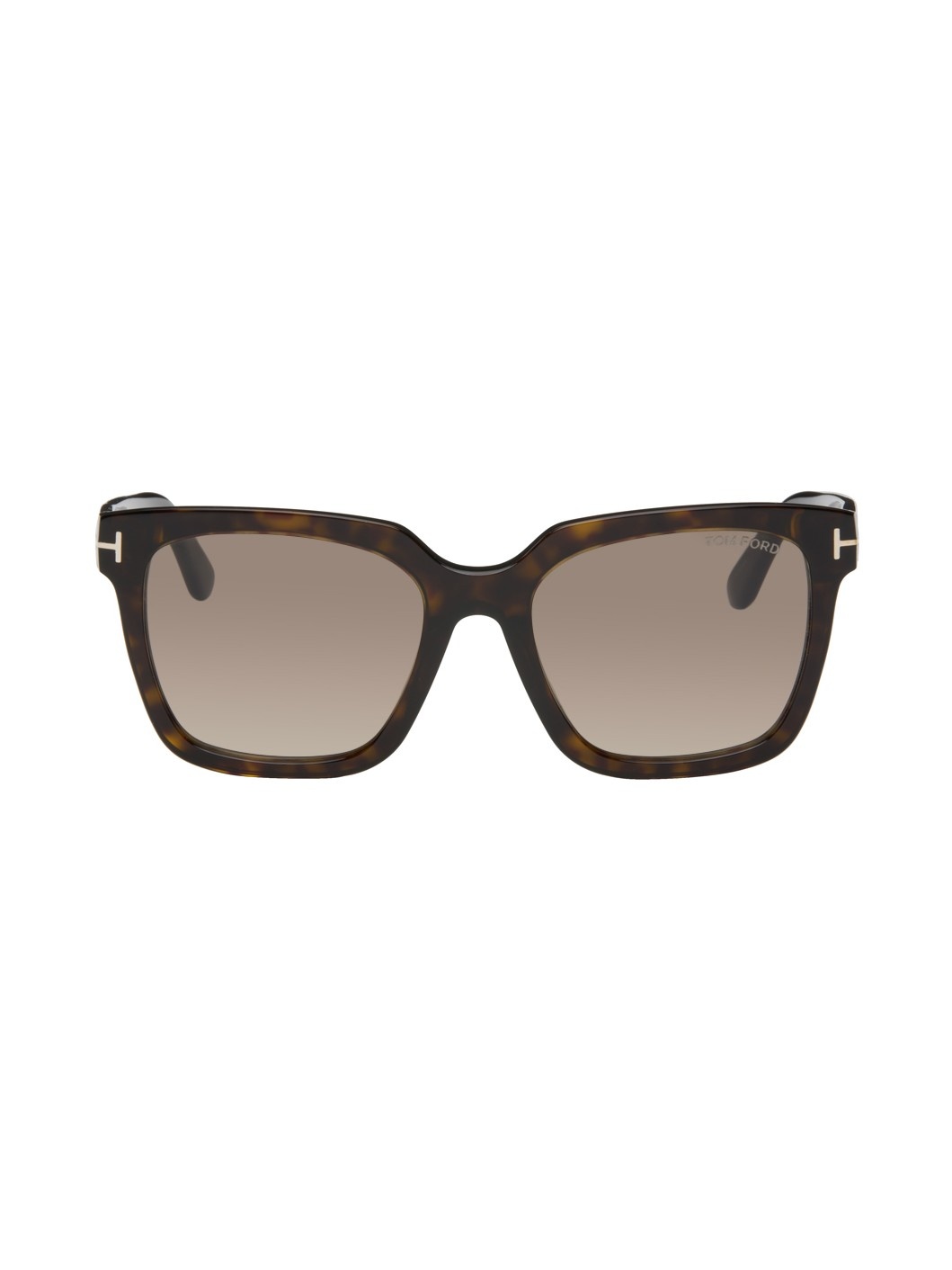 Square tortoiseshell acetate-frame sunglasses in brown. · Gradient brown lenses · 100% UV protection · Logo etched at lens · Integrated nose pads · Logo hardware at hinges · Exposed core wires · Logo plaque at temple tips · Includes case · Size: 55.19 140 Supplier color: Dark Havana