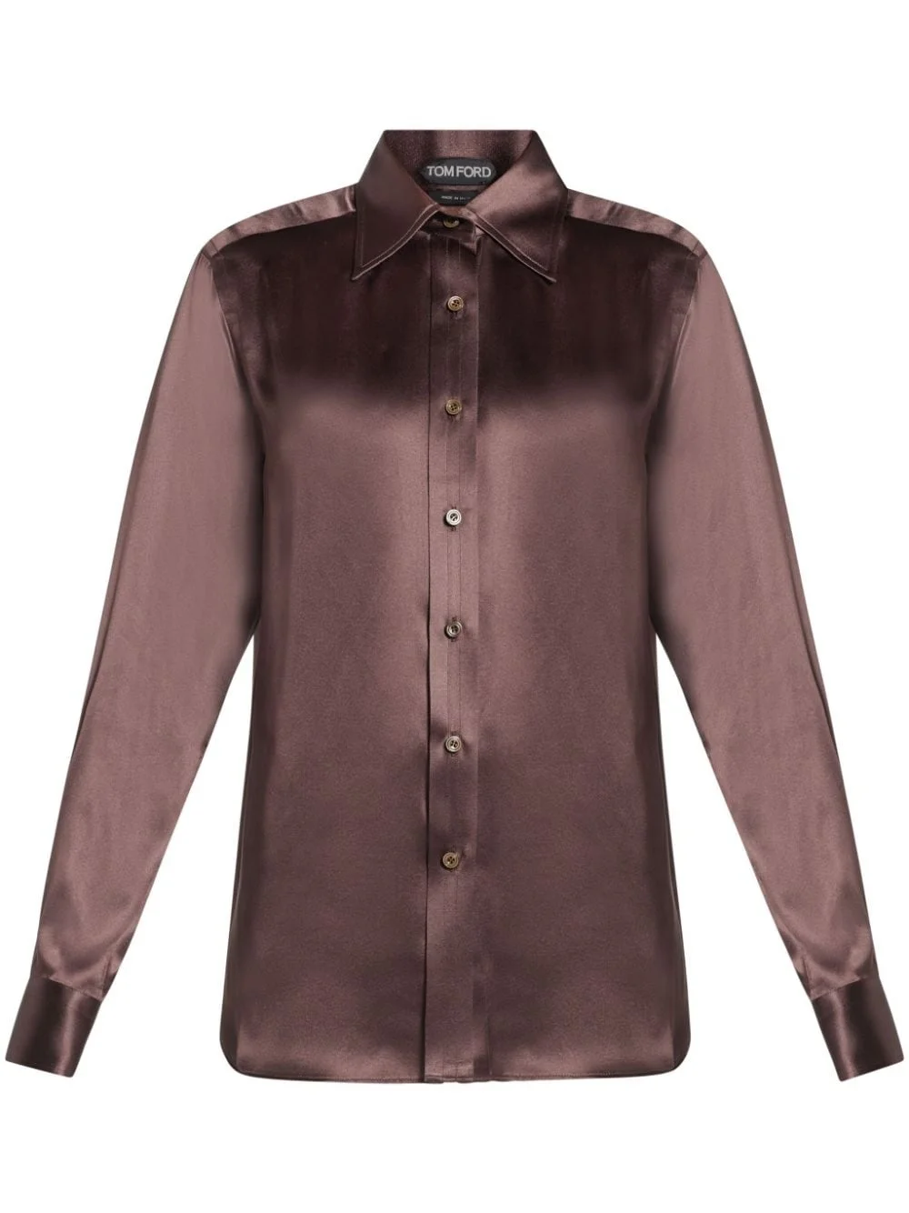 buttoned silk shirt Highlights - Mahogany - Silk - Classic collar - Front button fastening - Long sleeves - Curved hem Made in Italy Composition Mother of Pearl 100%, Silk 100%