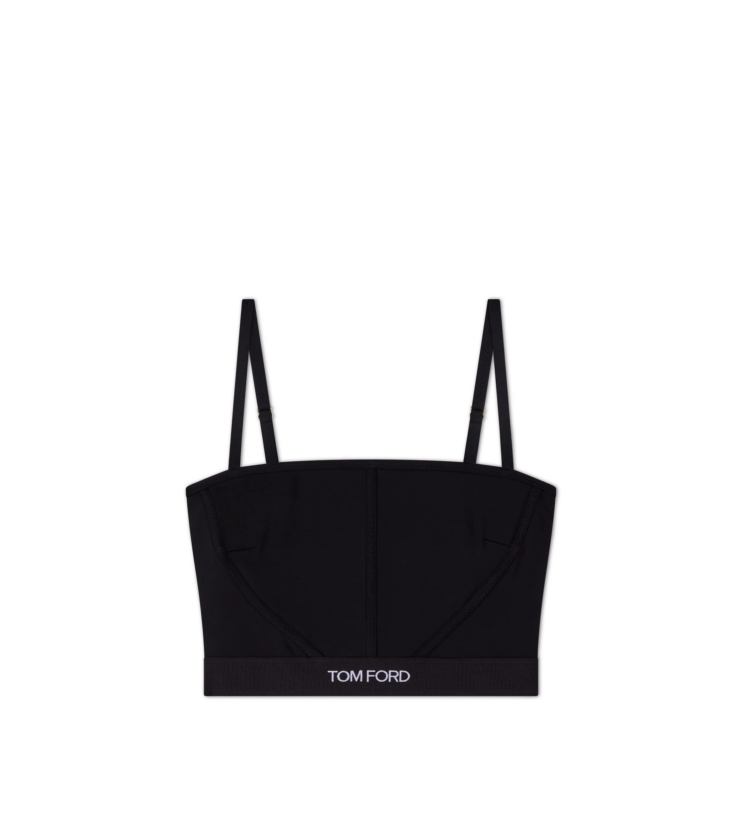 - STRETCH TOP - STRAIGHT NECKLINE - ZIG ZAG STITCHING DETAILINGS - ELASTICATED BAND WITH TOM FORD JACQUARD LABEL - ELASTIC ADJUSTABLE STRAPS - GOLD METAL HARDWARE - CRAFTED IN MODAL JERSEY - 97% MODAL 3% ELASTANE