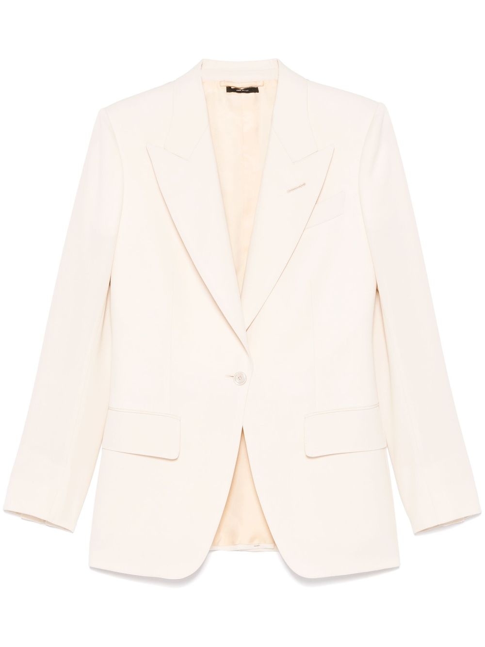 wool blazer Highlights - Blush beige - Front button fastening - Buttoned cuffs - Jetted chest pocket - Two front flap pockets Made in Italy Composition Lining: Cupro 59%, Silk 41% Outer: Wool 100% SIZE & FIT Model measurements Height 5 ft 11 in(1.8 m) Bust/Chest 31.49 in(80 cm) Hips 35.82 in(91 cm) Waist 24.8 in(63 cm) FittingInformation Designed for a slim fit that sits just away from the body offering a close yet comfortable fit The internal shoulder pads offer a structured shape Made from a midweight non-stretch fabric