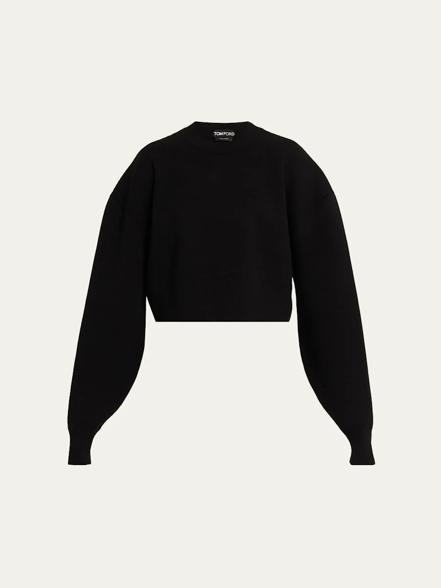 Wool-Cashmere Blouson-Sleeve Crop Sweater
