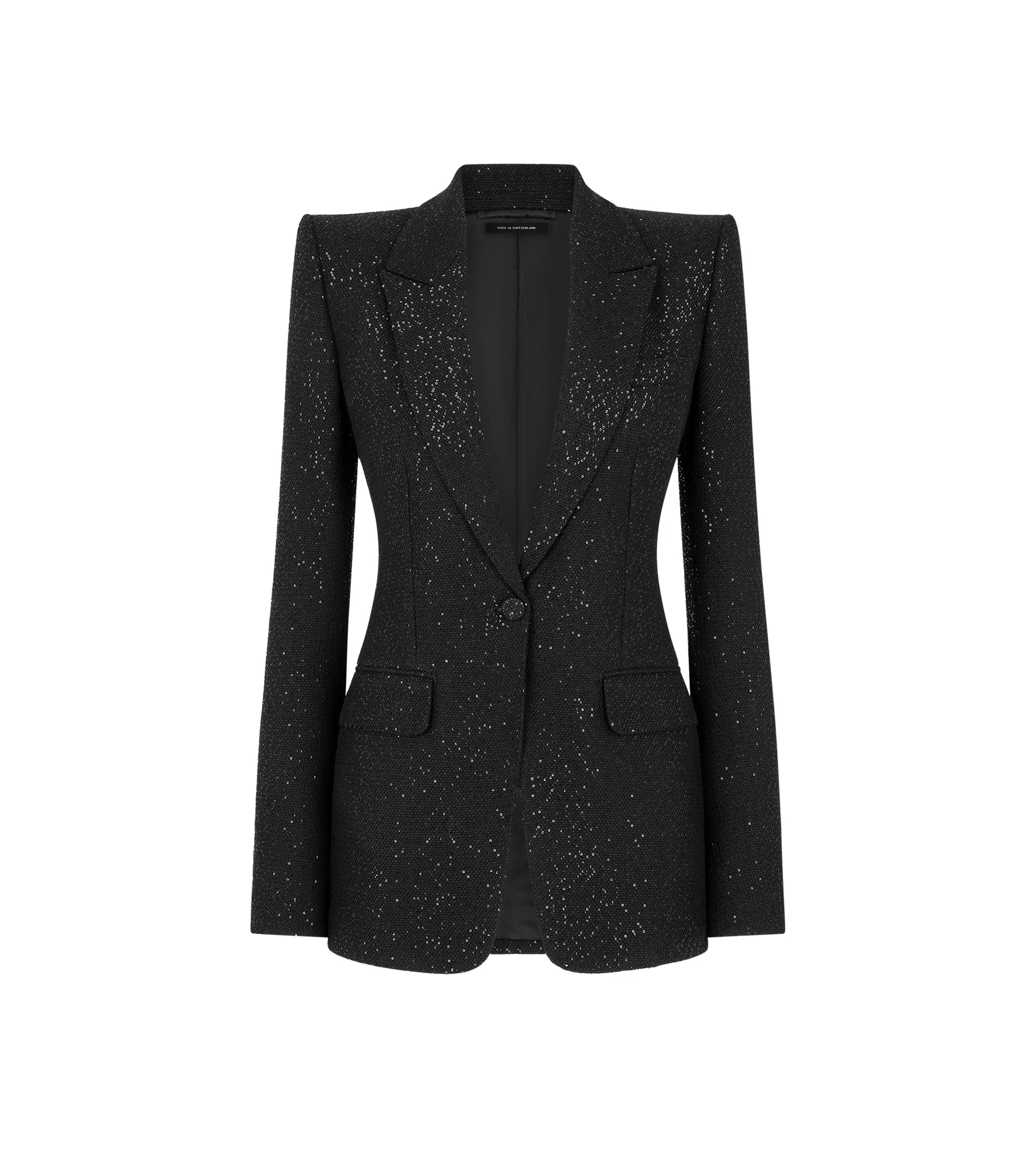 SEQUINED WOOL BLEND CREPE SINGLE BREASTED JACKET