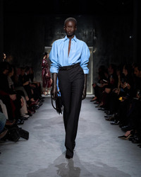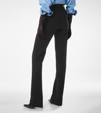 PRODUCT NO: PAW649-FAX1584 Tailored in a luxurious blend of virgin wool, mohair, and silk, these straight leg pants offer a refined structure with a rich and soft experience on the skin. The fabric is crisp yet fluid, engineered for clean lines and lasting form. An extended waistband, internal cotton structure, and discreet closures ensure a sharp fit, while hand-stitched fine bar tacks finish the side slanted pockets. Back double jet pockets and the luxurious details of self fabric covering horn buttons complete the design. Alterations are complimentary in store, whether you purchase online or in person. Contact our Customer Care to reserve your fitting appointment. Unveiled on the runway, this look is part of Haider Ackermann’s first Winter 2025 Fashion Show. Composition: 52% virgin wool, 32% mohair, 16% silk with lining made of 59% cupro, 41% silk, horn buttons