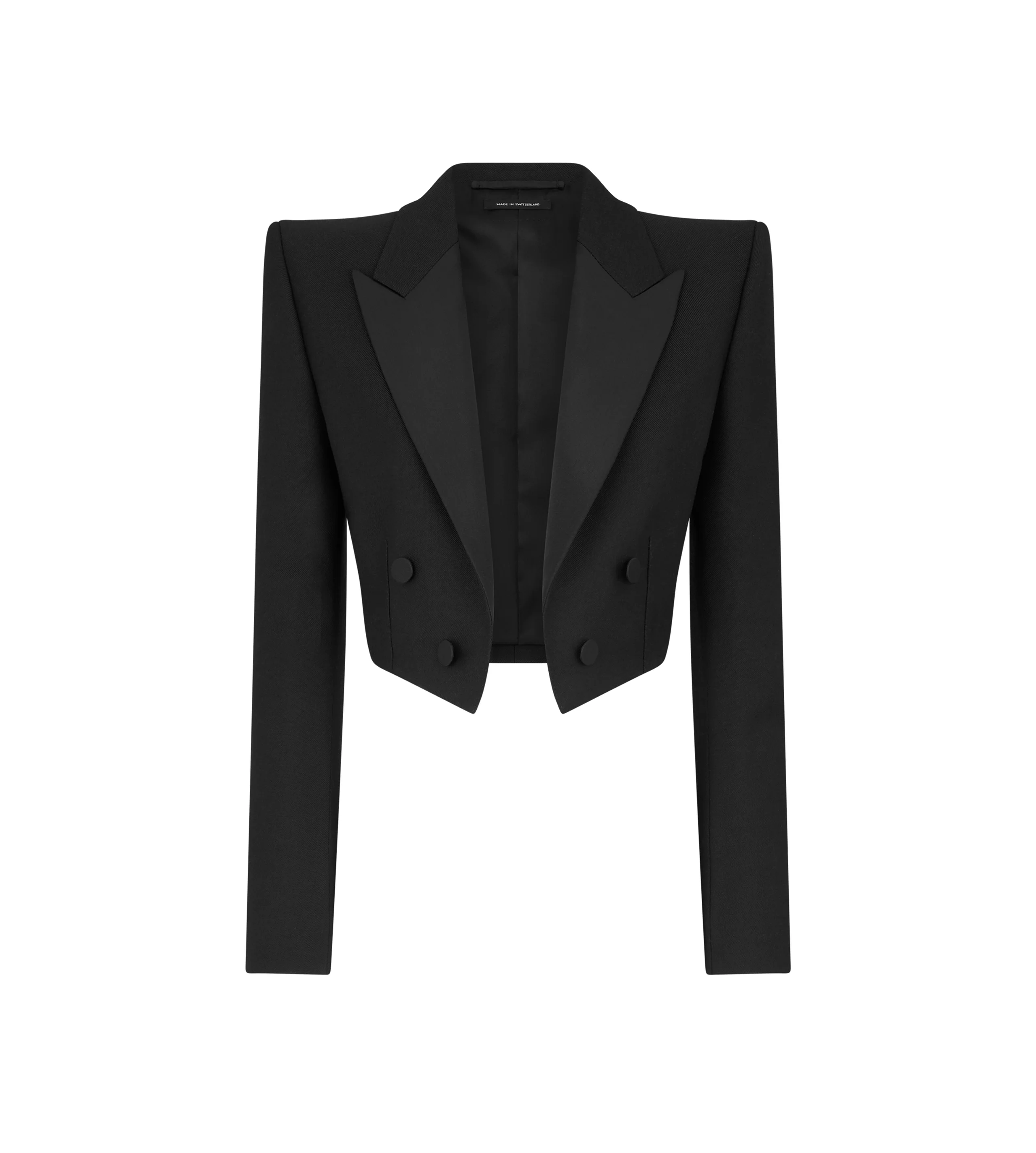 WOOL SILK BLEND DOUBLE BREASTED CROPPED TUXEDO JACKET