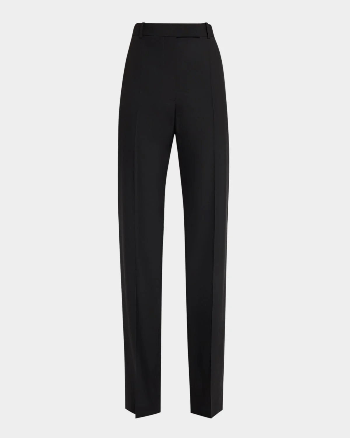 TOM FORD trousers are crafted from wool stretch crepe tailored with pressed creases High rise Flat front Side slip pockets Back buttonwelt pockets Straight legs Full length Hooktab/zip fly; belt loops Silk/nylon/polyamide Made in Italy