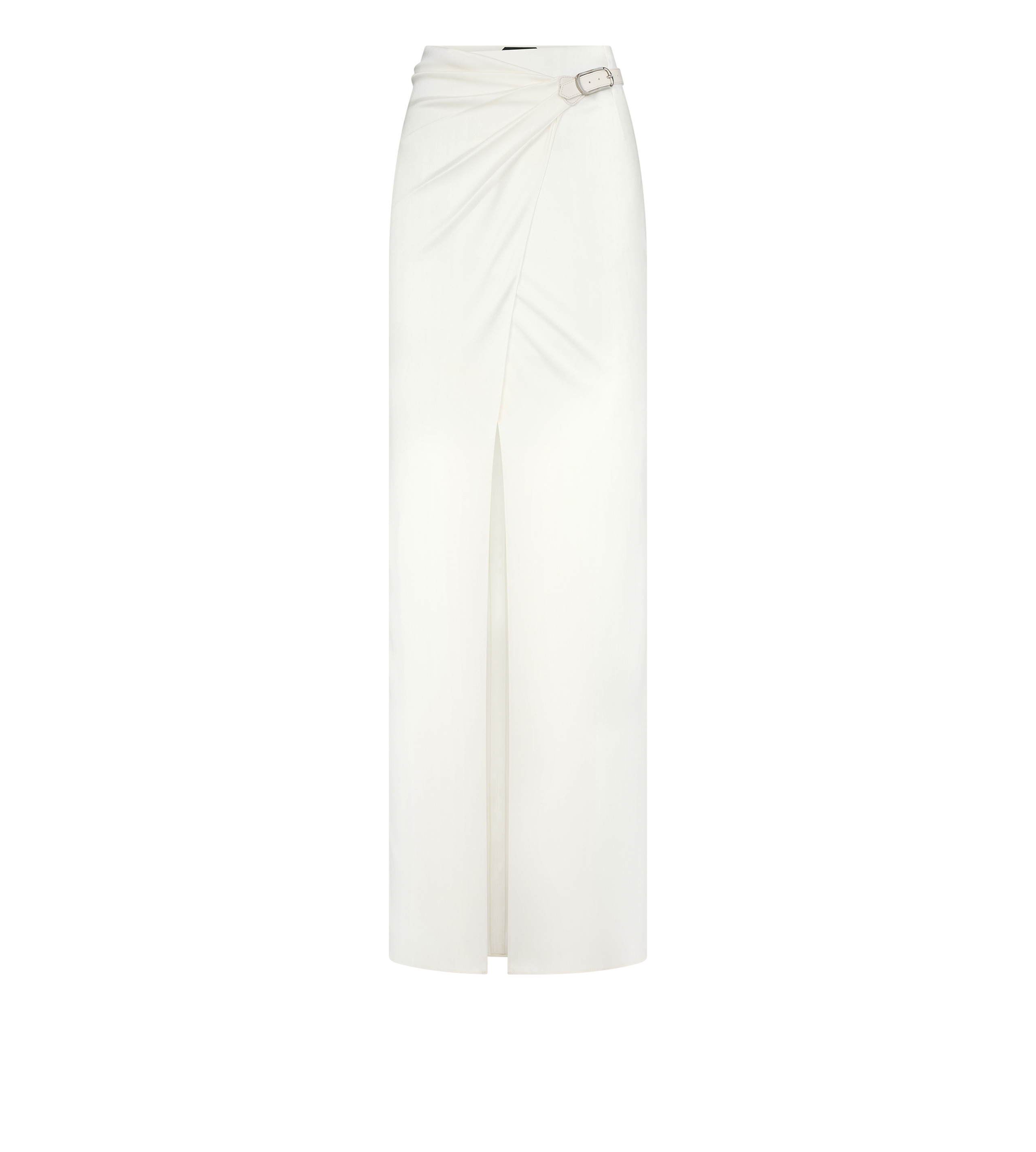 - WRAP MAXI SKIRT - TONAL LEATHER BELT WITH EDGE DYE - TF SIGNATURE METAL BUCKLE CLOSURE - FLOOR LENGTH - INTERNAL GROS-GRAIN FINISHING AT THE WAIST - CRAFTED IN FLUID DOUBLE SILK SATIN - 100% SILK - MADE IN ITALY