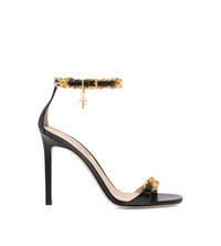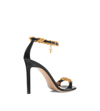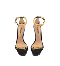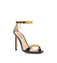 - SQUARE TOE SHAPE - 105 MM STILETTO HEEL - GOURMETTE CHAIN DETAIL - TF CHARM - BUCKLE FASTENING ANKLE STRAP - LINING: NUDE LEATHER - INSOLE: NUDE LEATHER WITH BLACK HOT-STAMPED LOGO - SOLE: LEATHER - 100% GOATSKIN