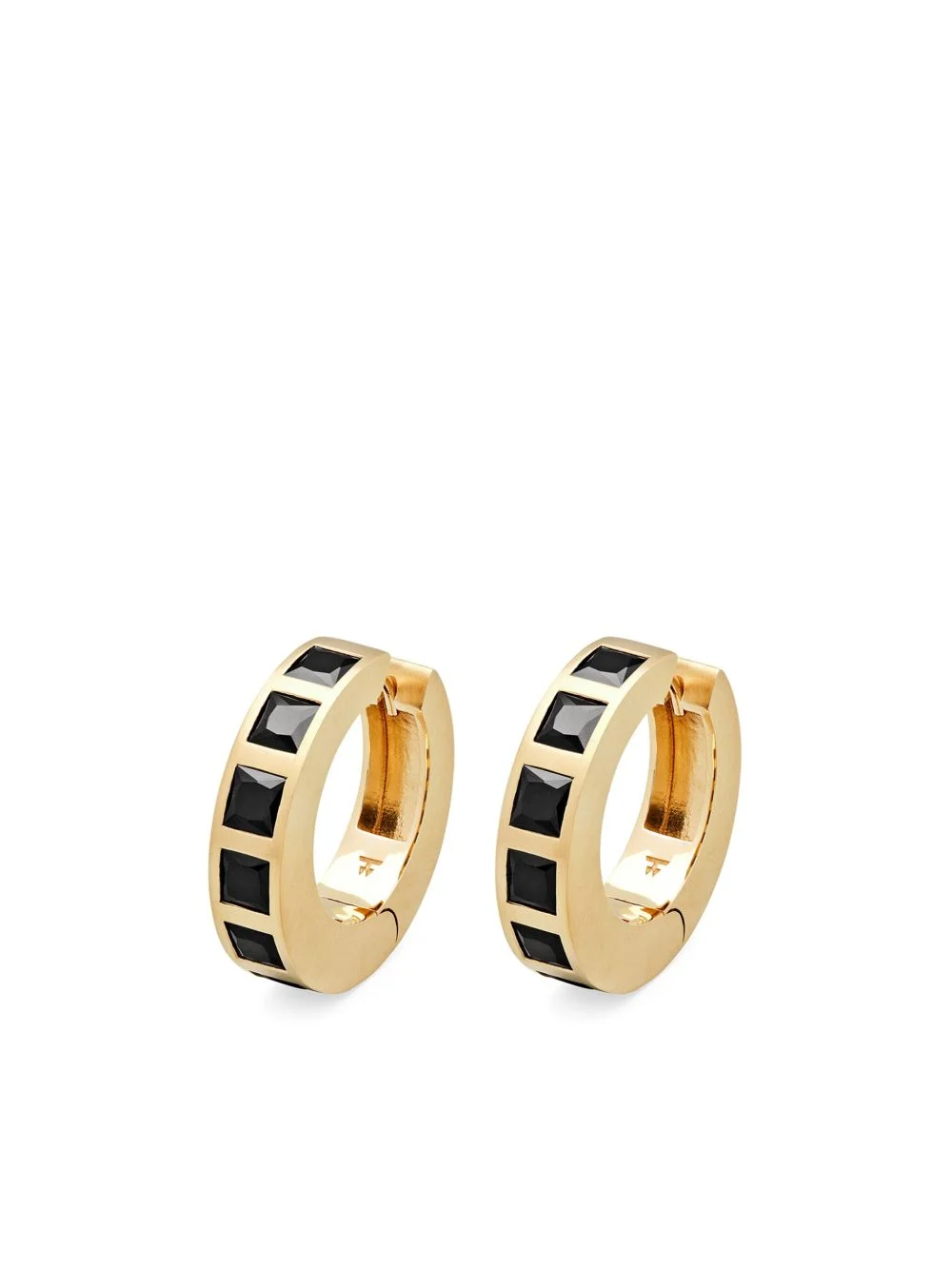 9kt yellow gold Arch Square onyx hoop earrings Highlights - 9kt yellow gold - Polished finish - Small hoop design - Bezel setting - Emerald cut - Onyx stone - Hinge-pin fastening - For pierced ears - These earrings come as a pair. - Normal everyday use and external agents may reduce the lustre of gemstones and gold surfaces. to maintain, use specific, non-abrasive products specially meant for cleaning jewellery. Imported