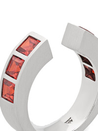 Arch Square ring Highlights - Silver-tone - Sterling silver - Rhodium plating - Polished finish - Garnet - Bezel setting - Open cuff design Imported