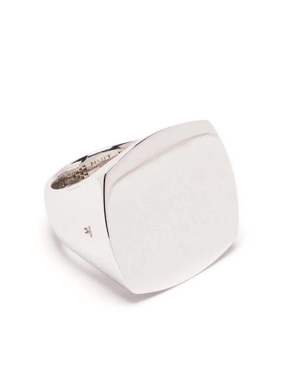 Clean Cushion sterling silver ring Tom Wood's Clean Cushion signet ring is embossed with 'Nuit et Jour Paris Oslo' on the interior - a nod to long days and nights spent in the two cities. The polished finish nods to the minimalist culture of the respective countries. Imported SIZE & FIT Model measurements Height 5 ft 10 in(1.78 m) Bust/Chest 31.49 in(80 cm) Hips 36.22 in(92 cm) Waist 25.59 in(65 cm) Measurement Band Width 0.23 in(0.6 cm) CIRCUMFERENCE 2.12 in(5.4 cm) Feature Length 0.82 in(2.1 cm) Feature Width 0.82 in(2.1 cm)