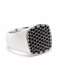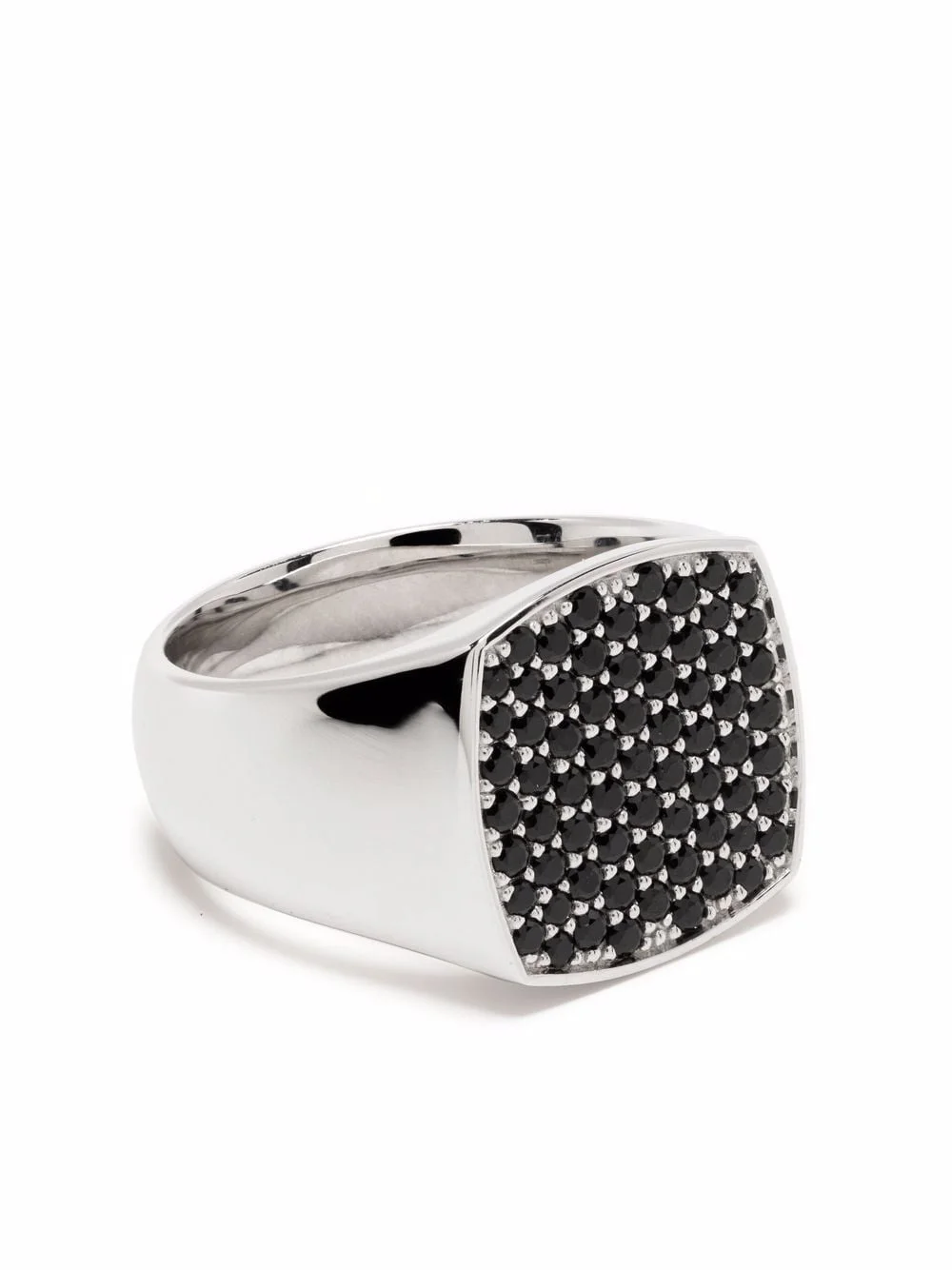 Cushion spinel-embellished signet ring Tom Wood highlights the cushion shape of this sterling silver ring - a brand signature - by encrusting it with 67 hand-set spinel stones. Imported SIZE & FIT Model measurements Height 6 ft 1 in(1.85 m) Bust/Chest 37.79 in(96 cm) Hips 37.4 in(95 cm) Waist 30.7 in(78 cm) Measurement Band Width 0.31 in(0.8 cm)