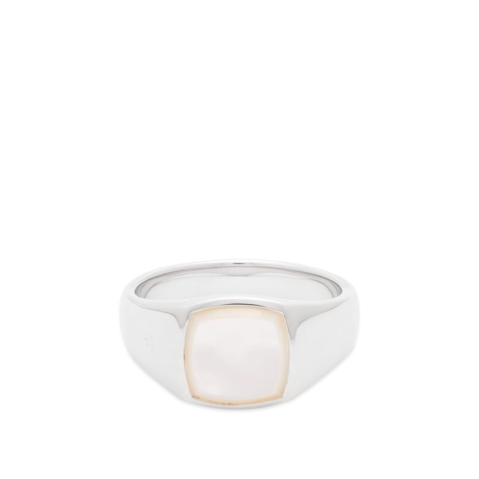 This Tom Wood Kay ring is a refined take on the classic signet, featuring a custom-cut white mother of pearl stone. Set against a sleek, polished silver base, it’s all about effortless elegance. Crafted from 925 sterling silver with a polished white rhodium finish, it adds a timeless yet bold touch to your style. - 925 Sterling Silver - White Rhodium Plated - Recycled Metals - Mother of Pearl - Engraved Branding