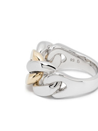 Dean Duo ring Highlights - Silver-tone/gold-tone - Recycled sterling silver, 9kt yellow gold - Polished effect - Curb-chain detailing Imported SIZE & FIT Model measurements Height 6 ft 2 in(1.87 m) Bust/Chest 38.18 in(97 cm) Hips 36.61 in(93 cm) Waist 29.13 in(74 cm) Measurement Band Width 0.19 in(0.5 cm) CIRCUMFERENCE 2.28 in(5.8 cm)