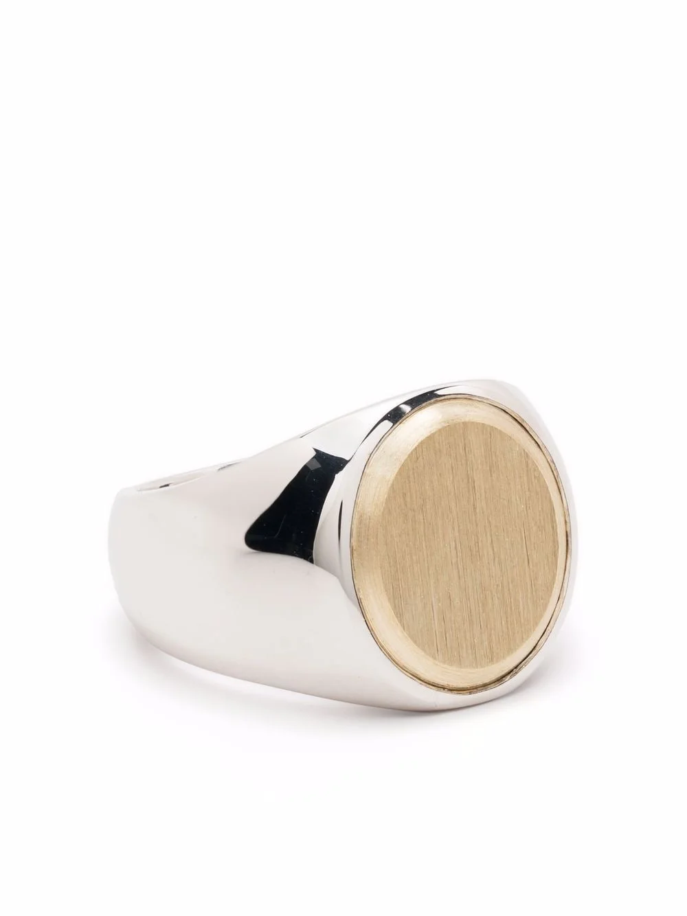 golden top oval signet ring Tom Wood takes inspiration from Scandinavian minimalism and functionalism, re-interpreting the classic signet ring with its modern and bold designs. Crafted in sterling silver, this oval-shaped signet ring is reiterated in a gold plated brushed top encapsulating the designer’s contemporary aesthetic. Imported SIZE & FIT Model measurements Height 6 ft 1 in(1.85 m) Bust/Chest 37.79 in(96 cm) Hips 37.4 in(95 cm) Waist 30.7 in(78 cm)